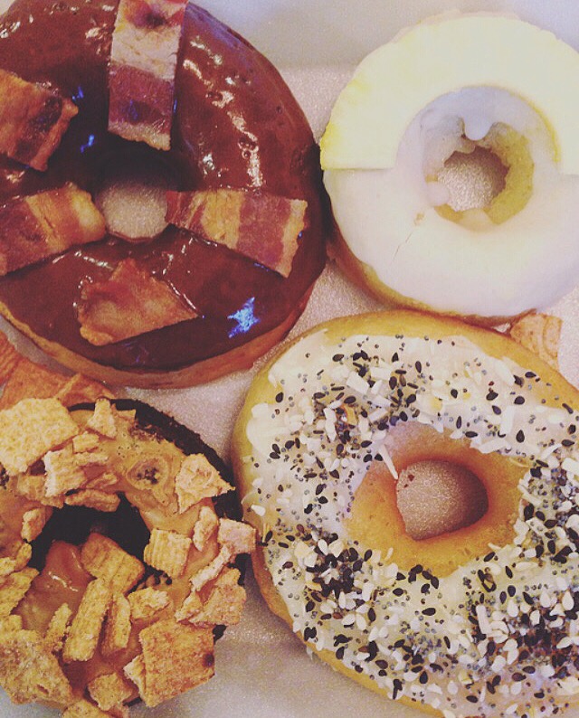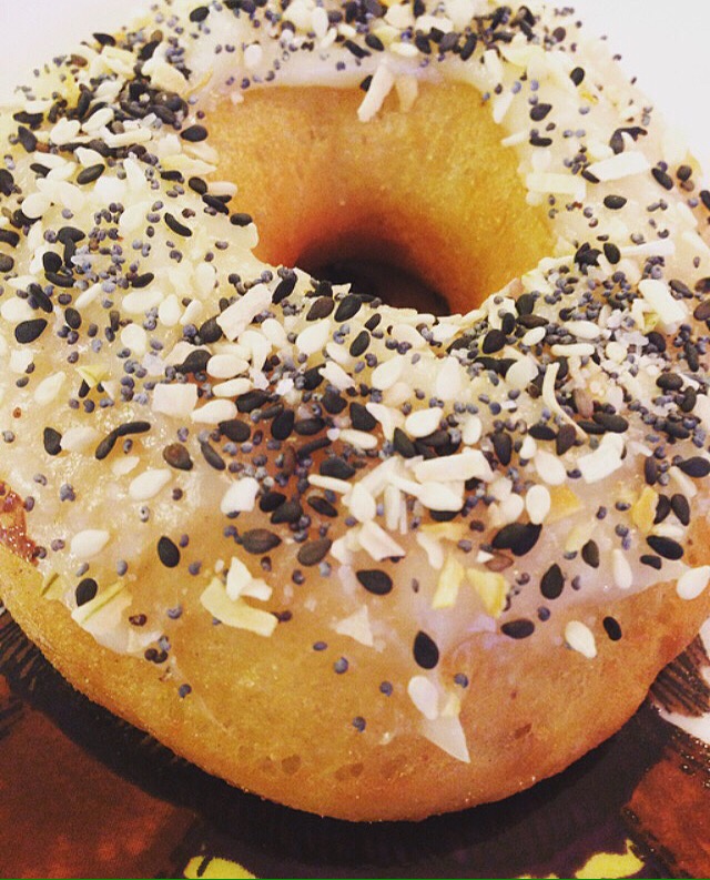 Alright now back to the Everything Donut. I saw that Joe’s was offering one this weekend and I knew it was destiny. Joe’s probably saved my marriage since I spent most of the last week looking for NYC flights despite getting the axe from the Hubby. Ha. And the verdict is….. OMG… weird .. But yum!