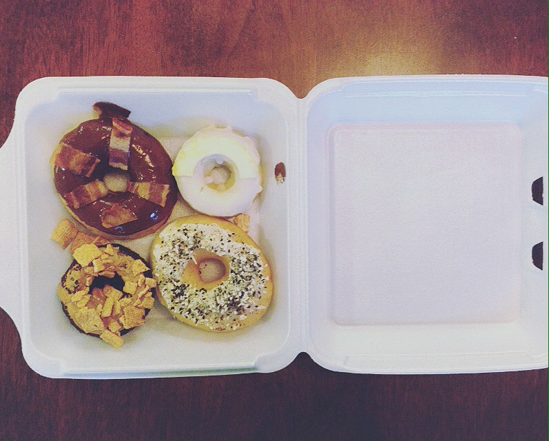 I am all about an Everything Bagel so I am not shocked I enjoyed the Everything Donut too. It literally was the perfect combination of sweet and salty and savory. Driving home my car was filled with the salty, garlicky aroma of a classic Everything Bagel. I’ll admit though the first bite was a little weird. It smelled like a bagel but felt like a donut so I think my brain got slightly confused. Of course I went in for more and the fluffy, light donut against the creamy icing and crunchy toppings made for the perfect texture blend. There really isn’t anything bad that I can say about this donut. I would eat it again in a heartbeat and should have probably ordered more to go. I did snag one extra “for my husband” which ended up being more of an afternoon snack for myself. Sorry dude! That’s what happens when you work on Saturday!