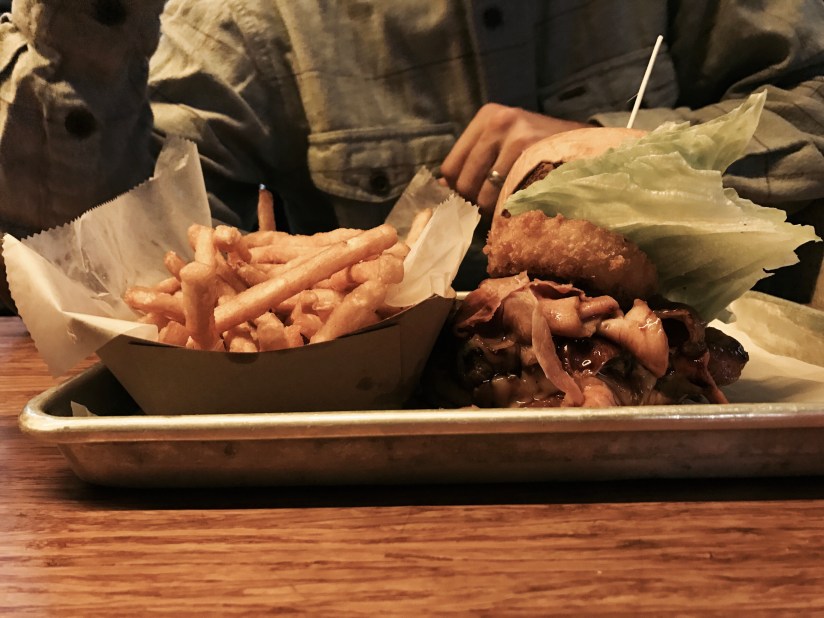 Their burgers are HUGE! Everything you could ever want in a burger was at this place. Giant juicy burgers with crazy toppings beer battered fries … and PIES … Yes, they had pies for dessert. I got a custom cheeseburger and Chappy got the Island Trucker and they both were amazing. Messy but totally worth it.
