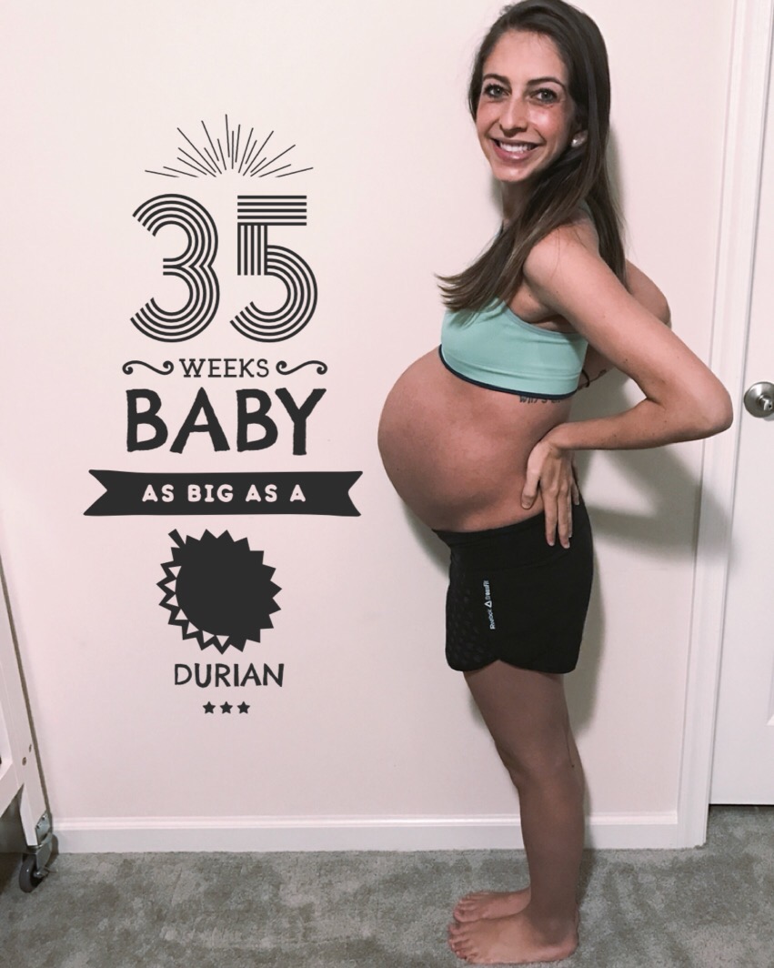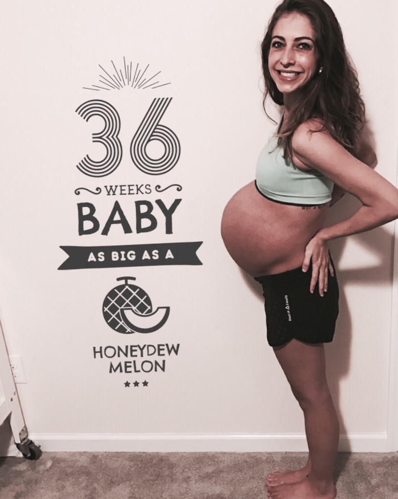 Guys, I’m not sure what happened but this morning I woke up and am 9 months pregnant! These last few months are seriously FLYING by and I’m sure the next 4 +/- weeks will be just as quick. As of today I am officially up 19.2 lbs since losing 3 in the first trimester and still feeling pretty good. I have had some heartburn here and there but nothing too dramatic and really only one more swelling incident, but I have been getting tons of Braxton Hicks contractions and do get pretty uncomfortable sitting at a desk all day. My back is not a fan of the chair and would definitely prefer to sit/lay on a couch instead. Hopefully I can just start working from home soon! Also I pretty much only have 5 shirts left that currently fit me ha but buying more seems pointless so late in the game so I’ll make due.