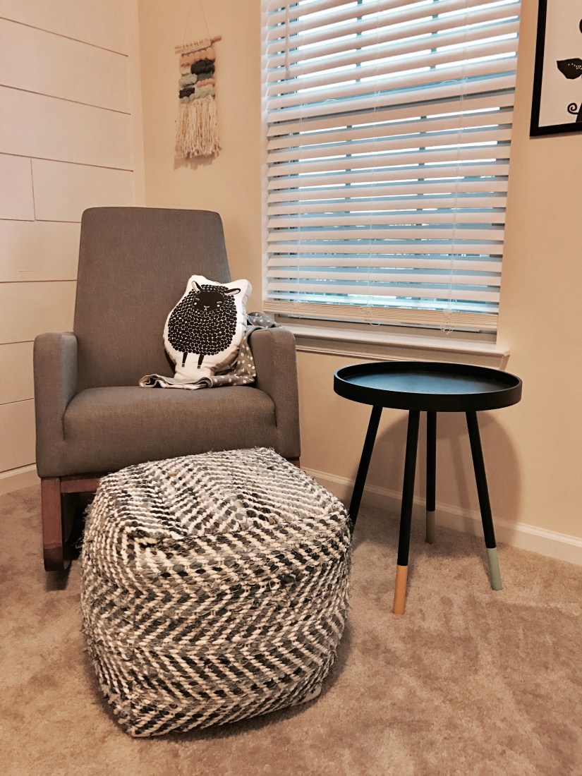 - Pouf: The first pouf I purchased was too high for our rocker but luckily this one worked perfect at 16″ tall!