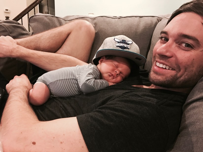He is officially huge ha aka 10 lbs. 12 oz. and clearly is still nursing great. Our days pretty much revolve around eating, sleeping, and pooping. So far we’ve been lucky since he’s not a very fussy baby but apparently that can change around 6 weeks so we’ll see! He goes about 4 hours between feedings at night (from start to start) but then can eat every 1-3 hours during the day. We are still exclusively breastfeeding so I pretty much just get to sleep in short intervals while Chappy sleeps all night haha. It’s okay though because Chappy will change all the diapers while he’s home during the day to make up for it.