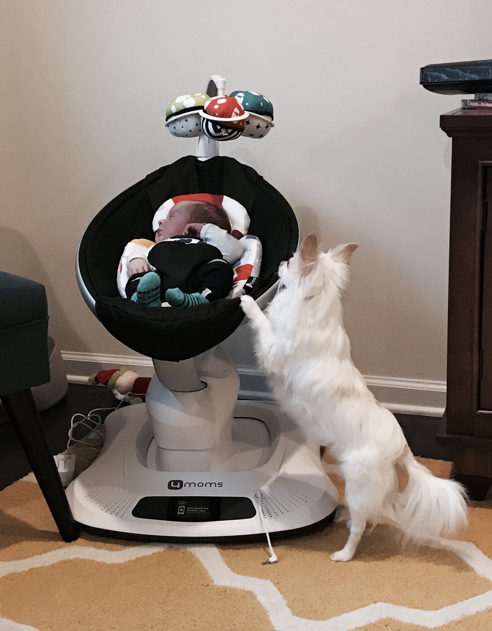 This is by far Chappy’s favorite baby item. He seriously thinks it’s the coolest thing ever and loves to show it to anyone who comes over to visit ha. It has an app., plays music through Bluetooth, and has a bunch of different speed and rhythm settings. We also purchased this infant insert for it so Waylen could use it right away.