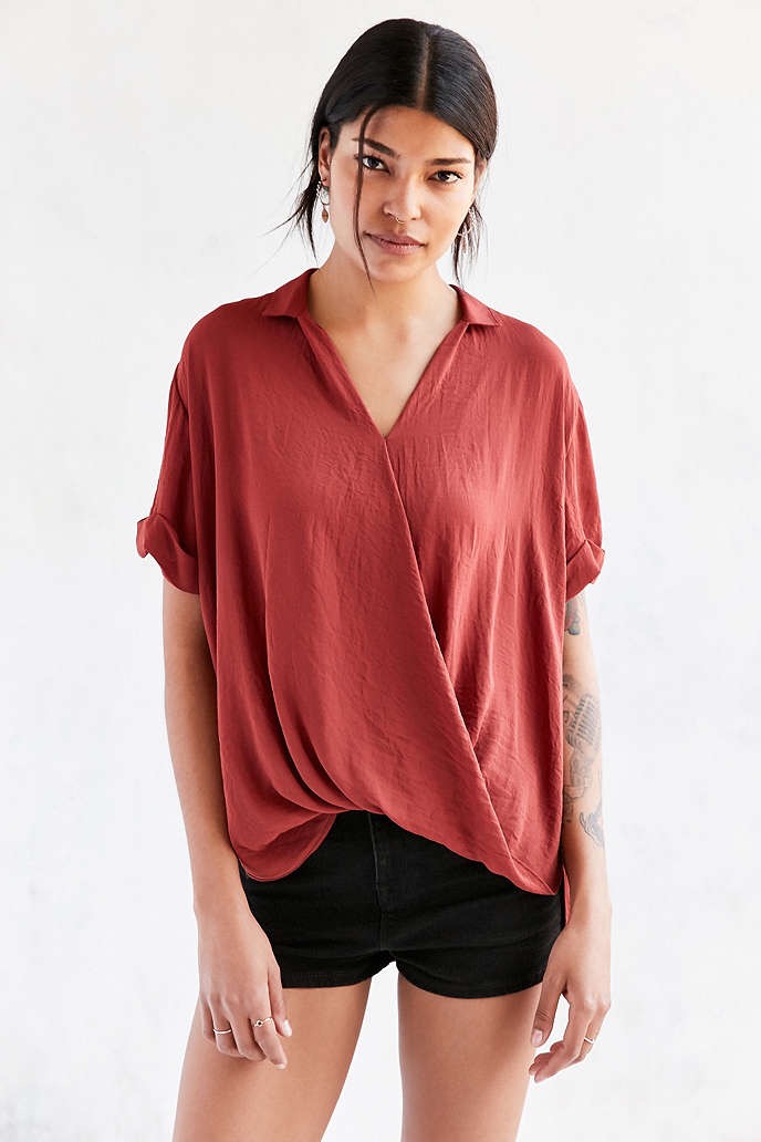 This top is great! The wrap front makes it easy to nurse in and the choker detail is really pooular right now plus the material is SO soft!