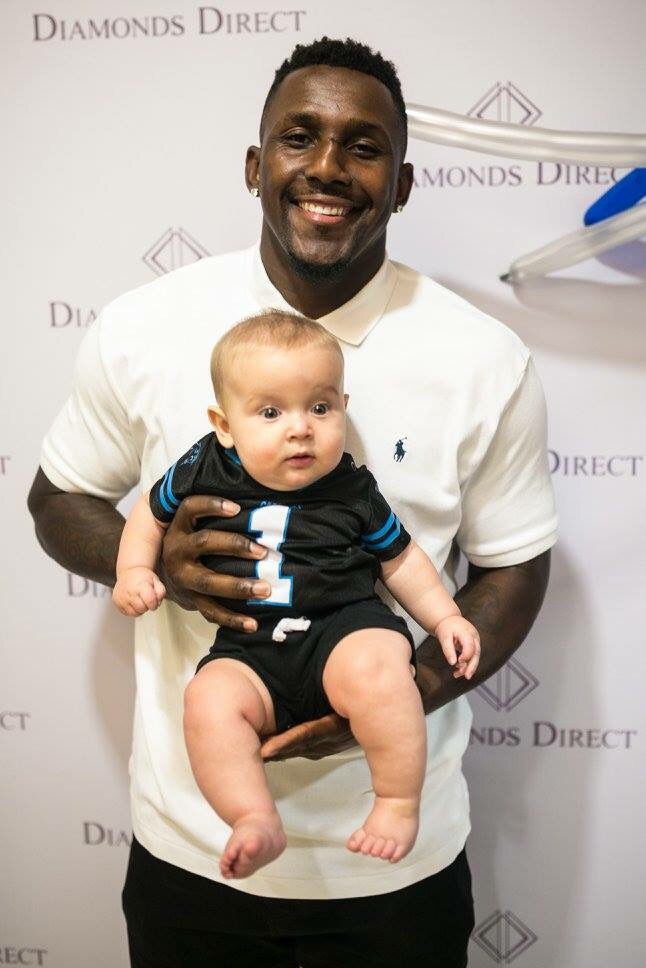 Some of his favorite things are animal noises, playing fetch with Pickles, his alphabet blocks, the book Roar, Greek yogurt, swinging at the park, and being held by any Panther player. That last one is kind of a joke but we’ve already got three Panther players to hold Waylen for a picture so might as well try for the entire team. Panthers PLEASE hold my baby. Ha