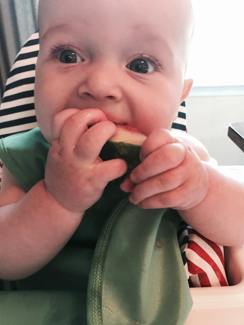 We are still chugging along with breastfeeding but now Waylen has also started solids. We’ve gone with Baby Led Weaning and so far he’s tried broccoli, sweet potato, avocado, zucchini, Greek yogurt, eggs, carrots, squash, and watermelon. It’s crazy how well he’s done. Babies are so smart! He knows exactly what to do, even when we gave him a spoon with yogurt, it went right to his mouth!
