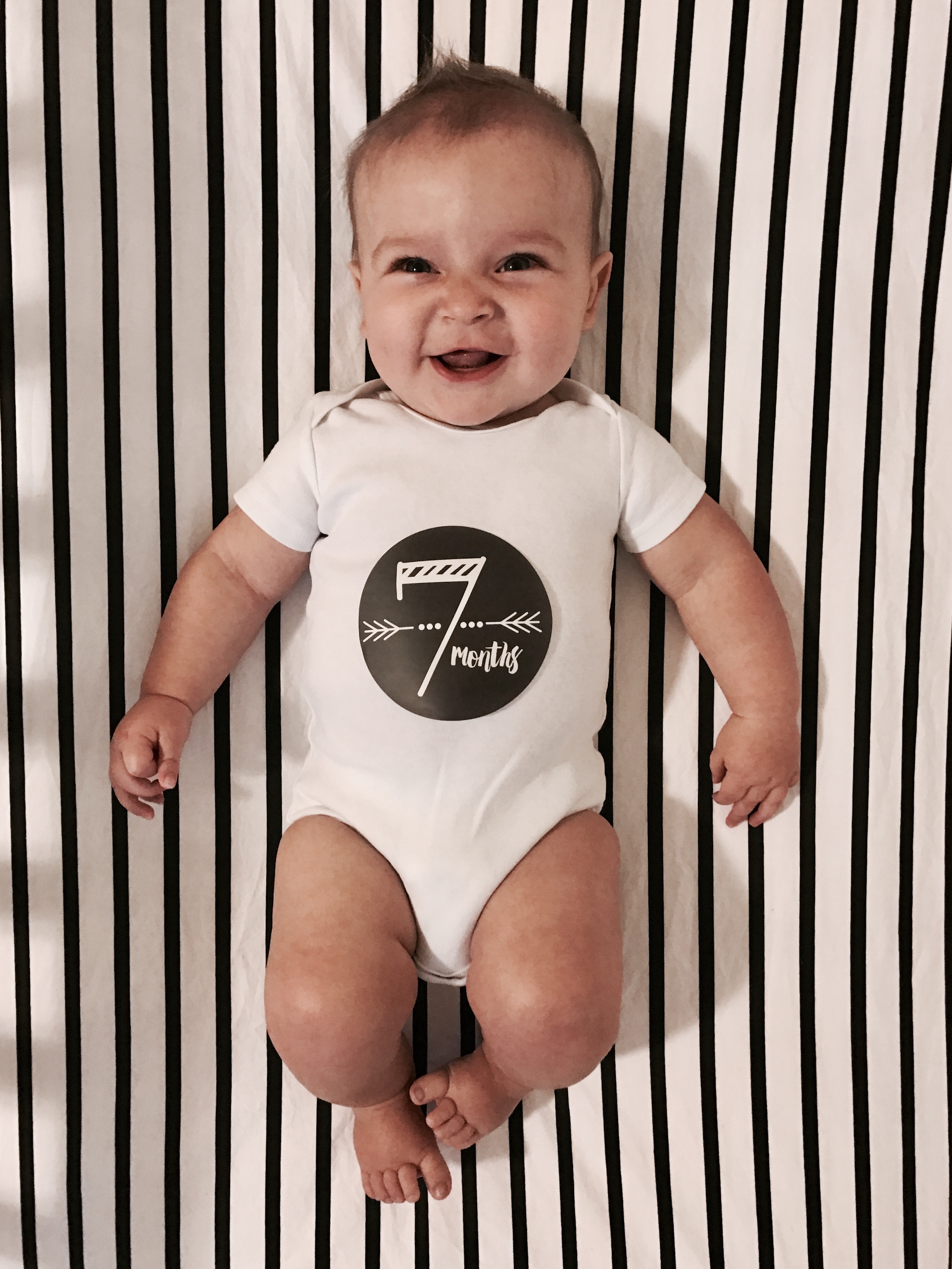Gosh 7 months seems SO old! Where did my squishy little baby go???? We are officially closer to his first birthday than we are to his birth! How weird is that?! Waylen is now around 19 lbs and seriously gives momma an upper body workout. Carrying him in his car seat? Yeah right! It’s so hard ha.