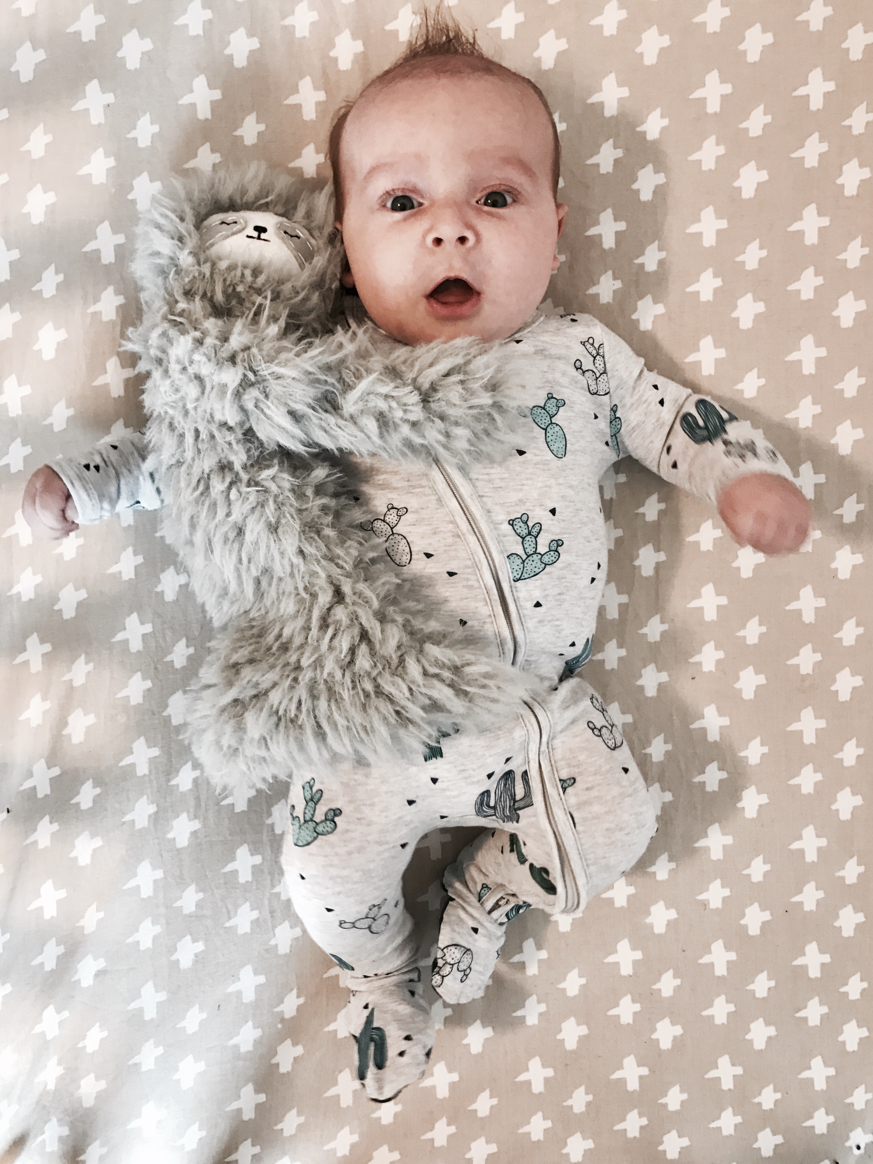 Let’s start with big chain stores. H&M and Cotton On are my go-to shops for inexpensive basics. I LOVE Cotton On’s zip pjs. They are slim fitting (but not too slim that my chunky monkey won’t fit,) have the cutest patterns, and zip all the way up. I almost never use snap PJ’s or Rompers anymore. In my opinion they take too long, especially now that Waylen is older and much wigglier.