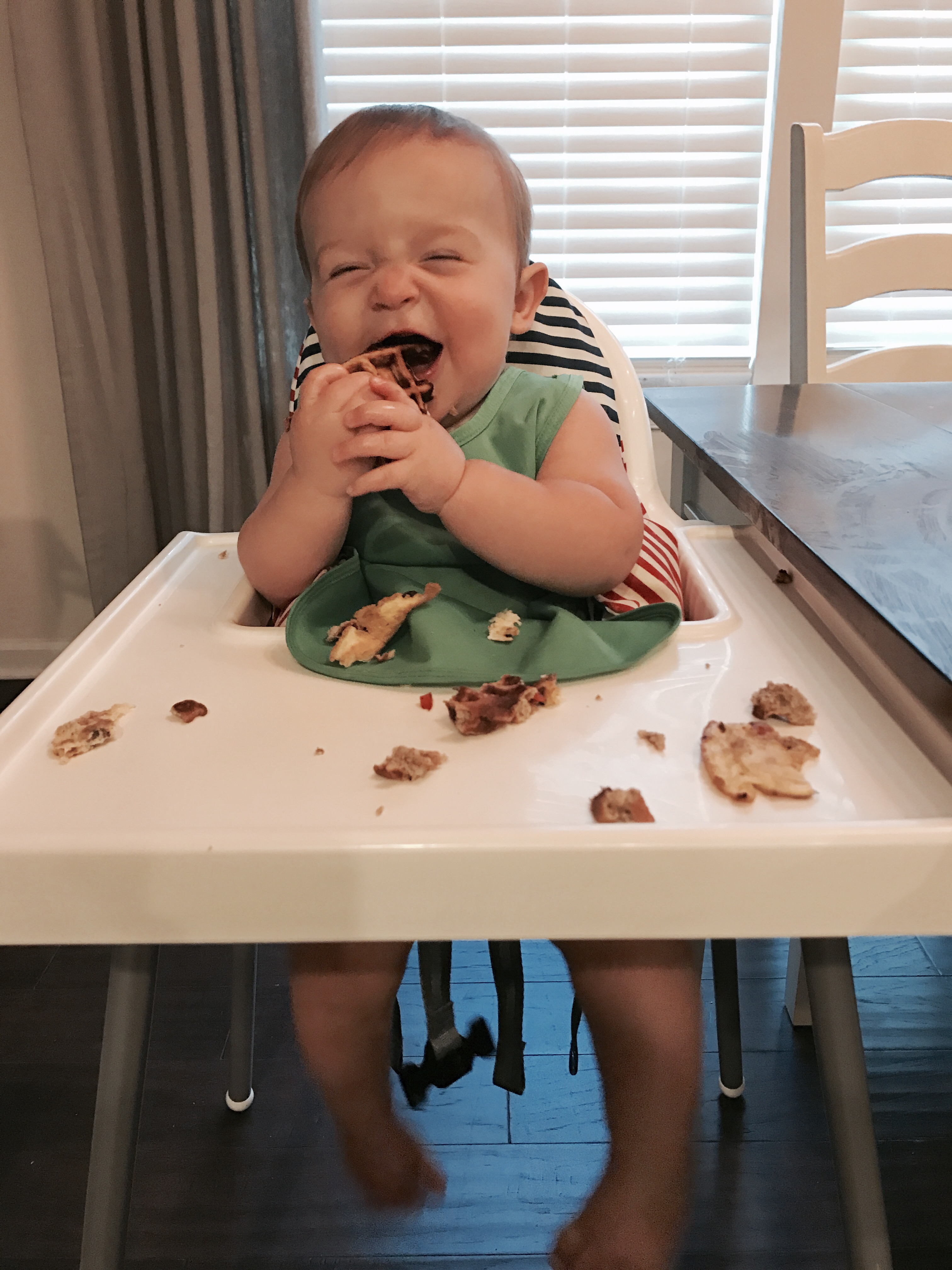 ylen has become a pro at eating these days. He will scarf down anything I'm willing to give him. Although when we started Baby Led Weaning we focused mainly on veggies, now Waylen will eat whatever meal we are having. It makes feeding him so fun and easy! Now I must admit sometimes, (okay- a lot of times,) I'll make Waylen healthy protein waffles and then make myself floury, sugar filled waffles ha. I should probably eat healthier too but… oh well!