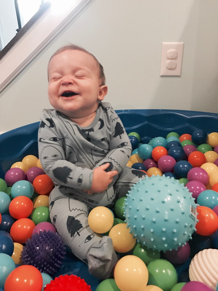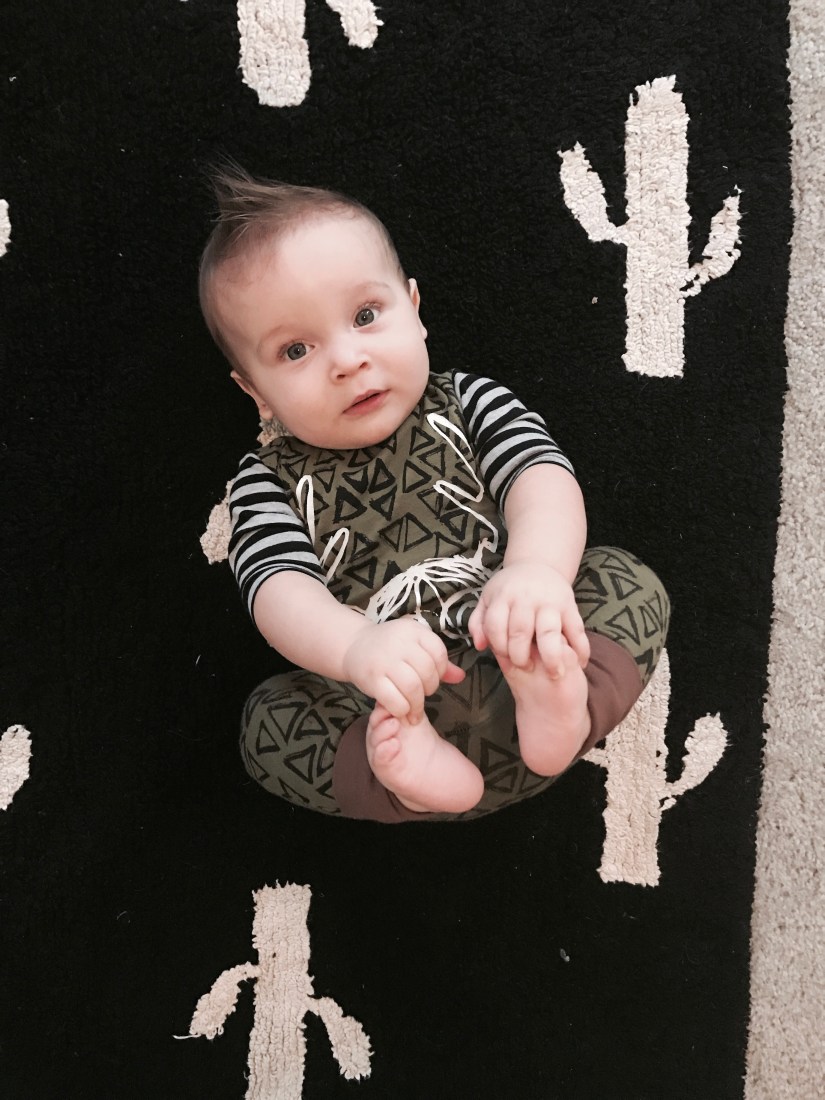 Unfortunately my giggly little babe doesn’t think I’m hilarious anymore ha. Okay, so he still laughs a bunch (multiple times a day) but it’s a lot harder to get him laughing for a picture! He’ll just stare at me like I’m crazy. Which I probably am… I mean, I am making crazy noises, faces, pretending to hiccup/sneeze/ do pretty much anything to get him to laugh. Oh well!