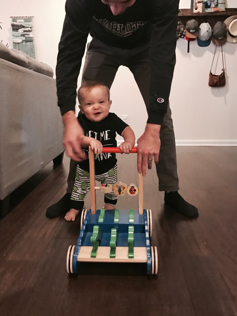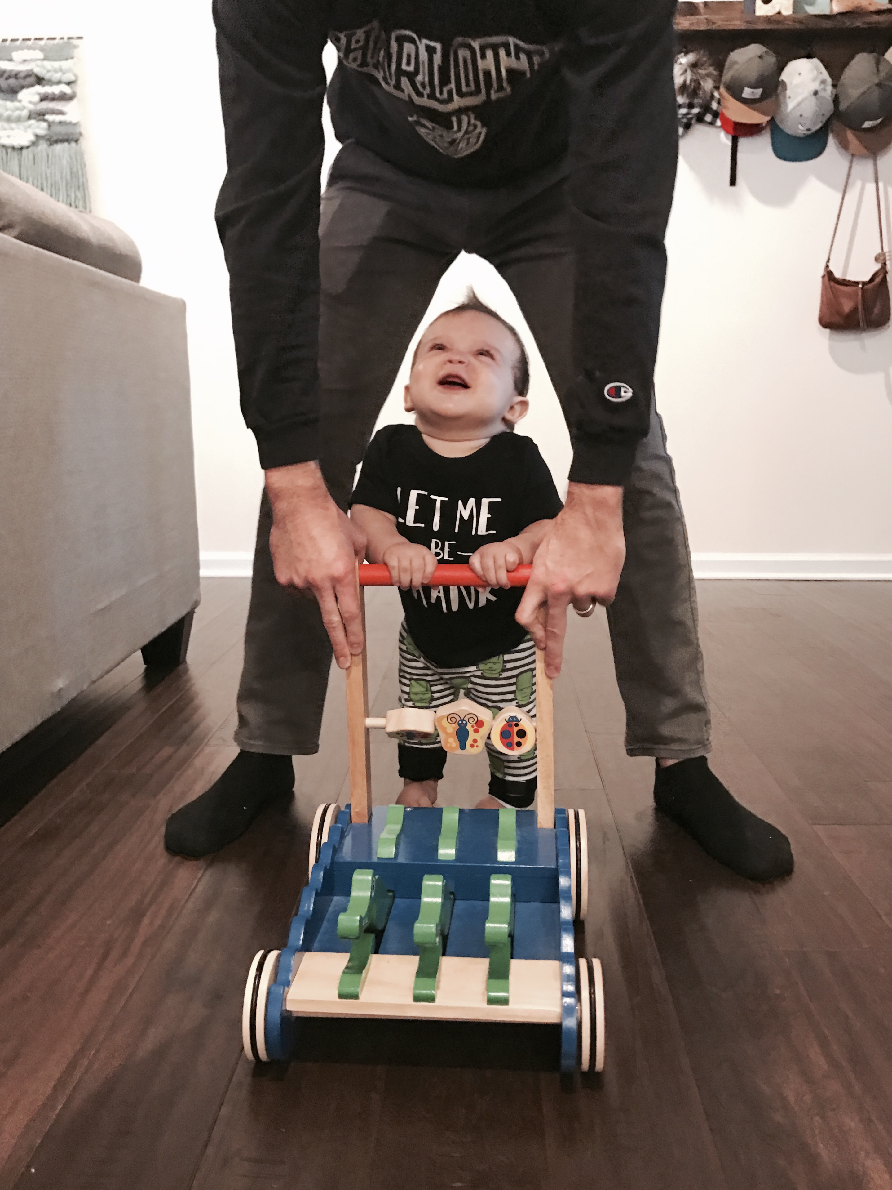 Waylen still isn’t walking yet but he is getting more and more comfortable on his feet! He also had his second cold this month (which he is actually still getting over.) Nothing is sadder then a baby with a runny nose!