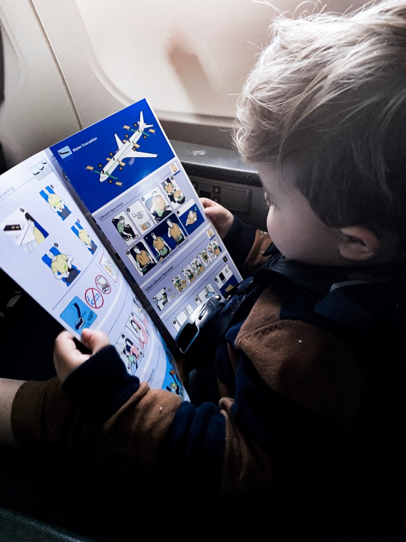 We didn’t officially have to buy him his own seat for the flight this time but since my lap is rapidly decreasing in size due to my ever growing baby bump we decided it only made sense to finally take the plunge.