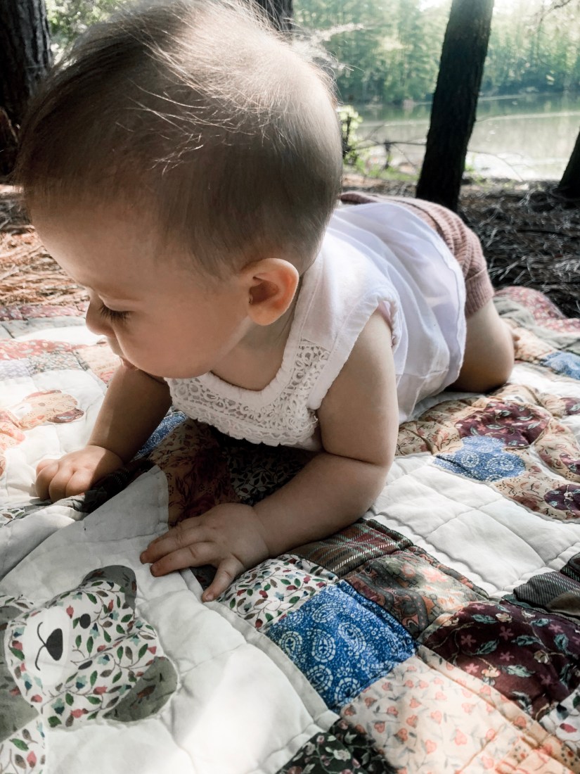 Kennedy’s favorites things these days are pretty much all of Waylen’s toy cars, kisses from mom, anything crinkly, watching Waylen be crazy, and watching us eat. She also is rolling and scooting around everywhere on tummy time. She’s been practicing her crawl “rock” as I call it and has recently started army crawling everywhere to reach things. This past month she has also been working on her sitting skills and went on her very first swing ride!