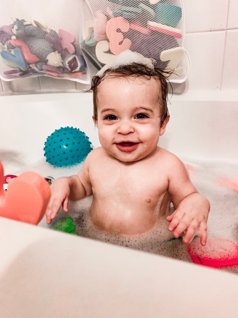 Some of Kennedy’s favorite things these days are food (duh ha,) climbing the Pikler triangle or stairs, cruising the couch, bath time, playing with Waylen and getting into allll the mischief. She is still just a giggly happy girl with so much personality!