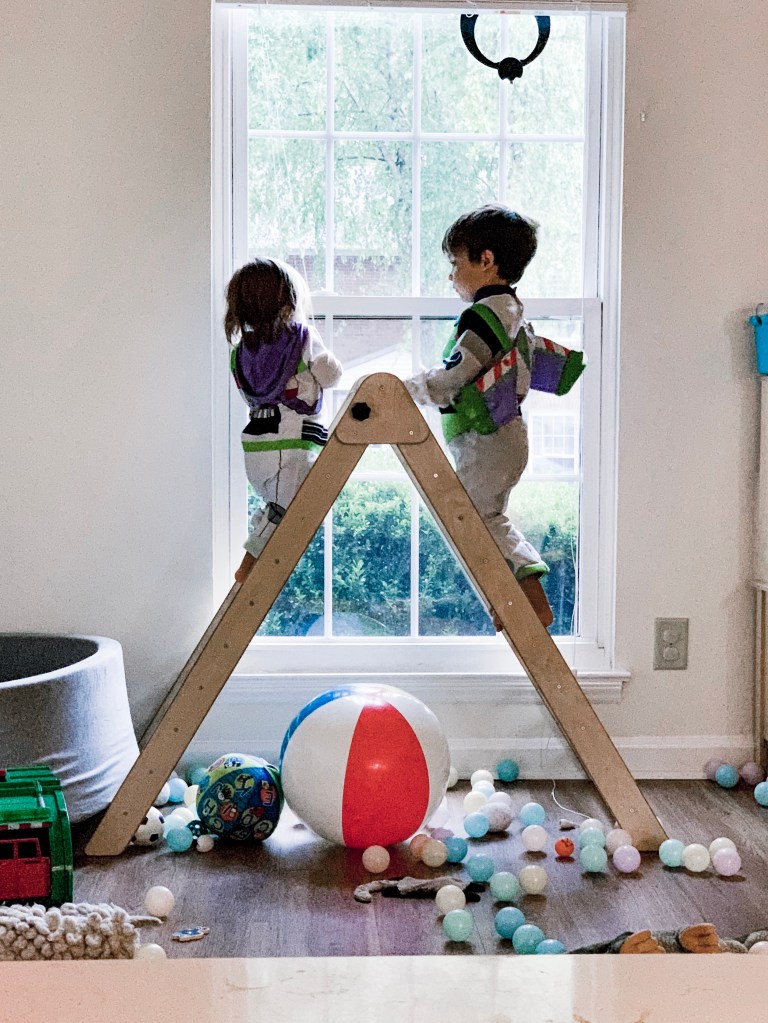 Her favorite things to do these days are climbing, pretending to cook in the kitchen (and climbing into the kitchen sink,) dressing up like buzz lightyear, stacking her toys and reading books.